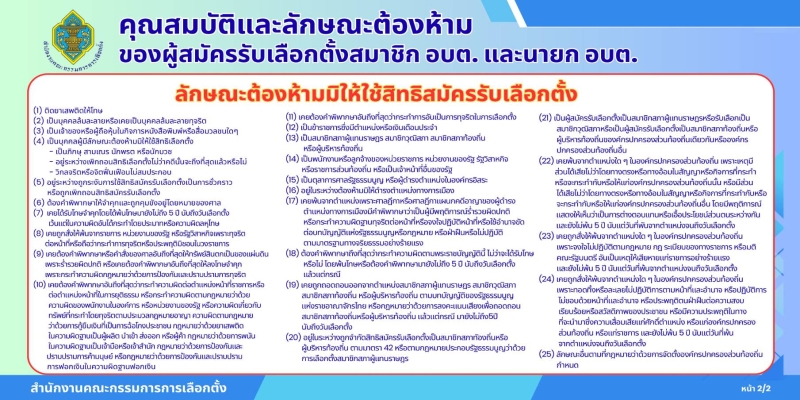 ประชาสัมพันธ์คุณสมบัติและลักษณะต้องห้าม ของผู้สมัครรับเลือกตั้งสมาชิก อบต. และ นายก อบต.